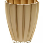 Tilføj et strejf af farve og elegance til din bolig med denne smukke glas skjuler i en guld nuance. Skjuleren er fremstillet i gennemfarvet glas med en karakteristisk riflet struktur og dekorativ bølget kant, som giver et eksklusivt og feminint udtryk. Perfekt til potteplanter, blomsterarrangementer eller som en del af din bordpynt.