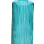 Denne smukke glasvase i turkis glas er formet som en klassisk patentflaske med elegant mønstret overflade. Den kombinerer retrocharme med moderne boligstil og egner sig perfekt som vase til enkelte blomster, små buketter eller dekorative grene.