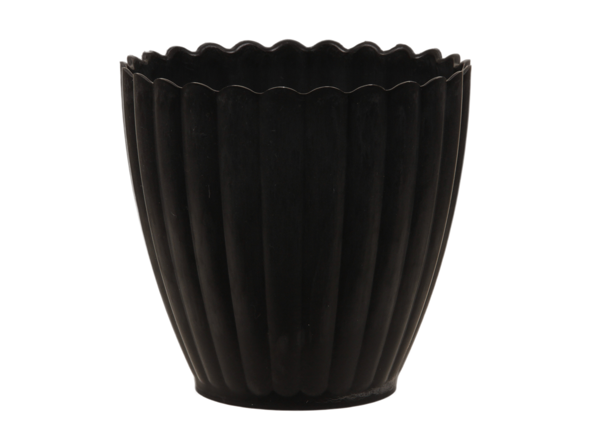 Denne sorte poly skjuler kombinerer funktionalitet og stil i ét produkt. Med sin elegante, riflede overflade og dekorative bølgekant giver den et sofistikeret udtryk, der passer perfekt til både moderne og klassiske blomsterarrangementer.