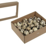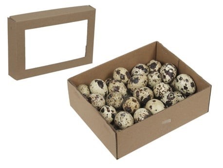 Boks med assorterede vagtelæg – 48 stk. (Ø ca. 3 cm)