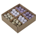 Boks med assorterede vagtelæg – 72 stk. (Ø ca. 3 cm)